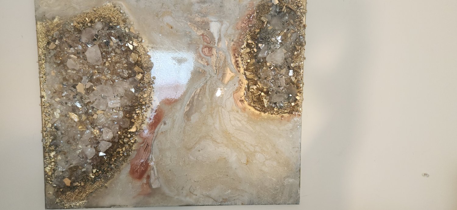 Resin, Canvas, Quartz, Alcohol ink, spray paint