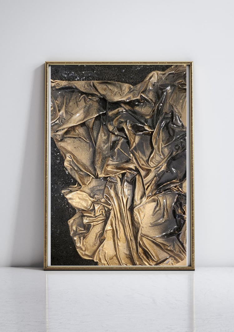Cream Gold 3D Textured Art with Quartz