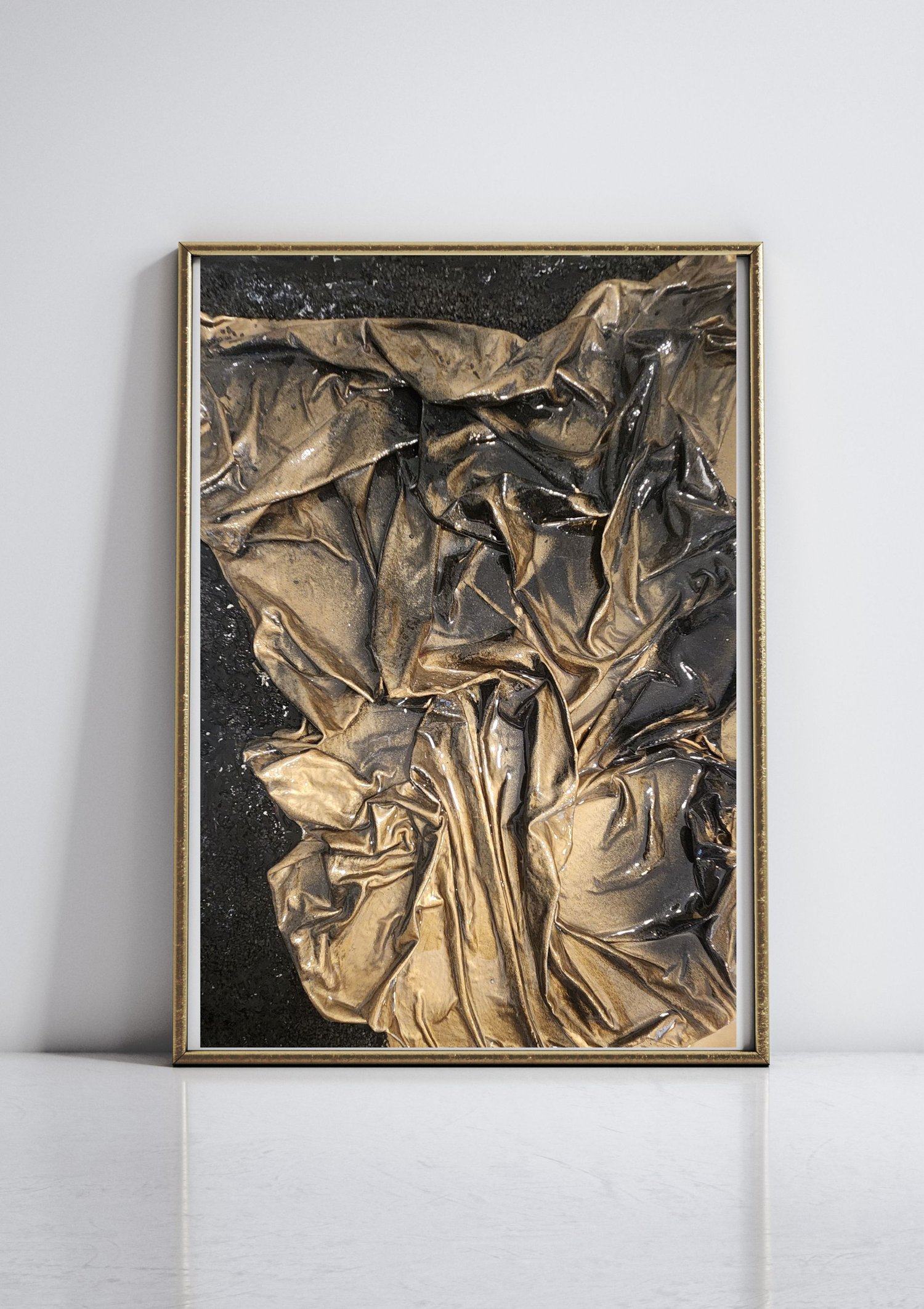 Gold and Black 3D Mixed Media Art (Sold w/out frame)